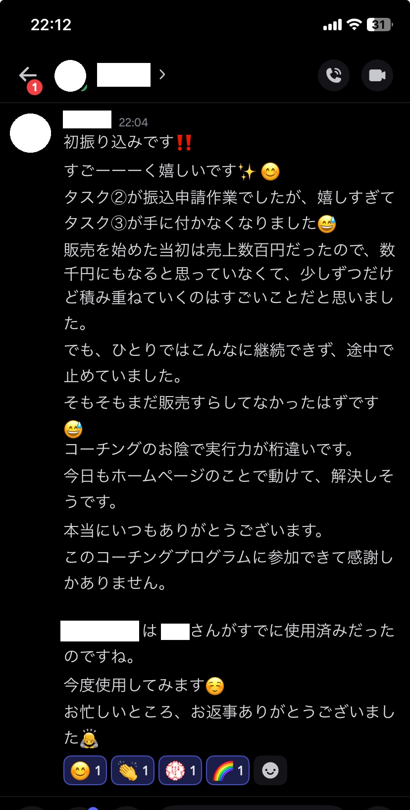 今回は、メンバーのYさんがそんな初振り込みの喜びをご連絡くださったのですが、